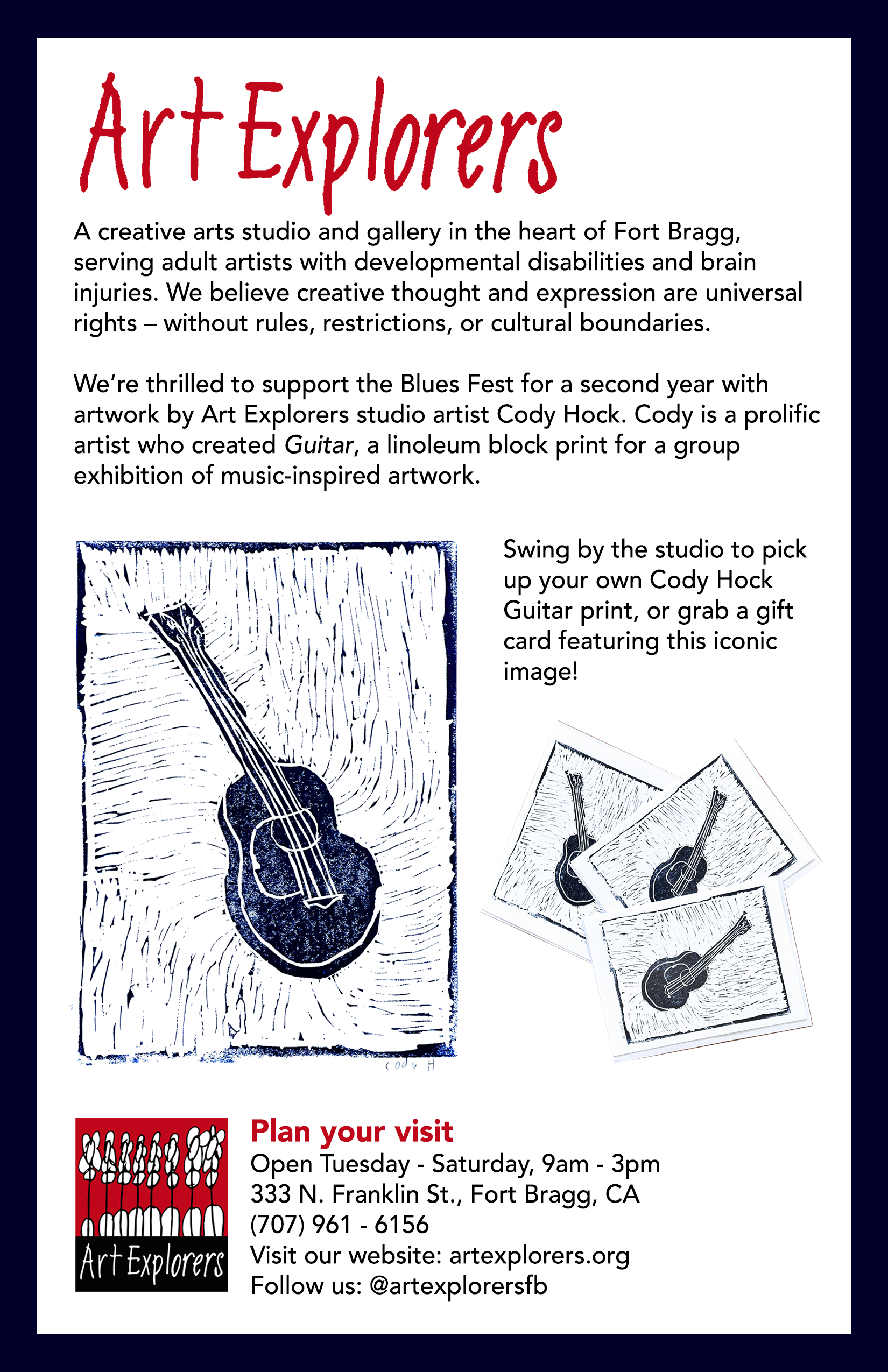 Art Explorers, Inc. is a creative arts program and progressive studio in Fort Bragg, California, serving physically disabled and neurodivergent adult artists. We are a nonprofit 501(c)(3) tax-exempt corporation. Our mission is to provide a fun, nurturing, non-judgmental, and artistically stimulating environment for creativity to thrive!